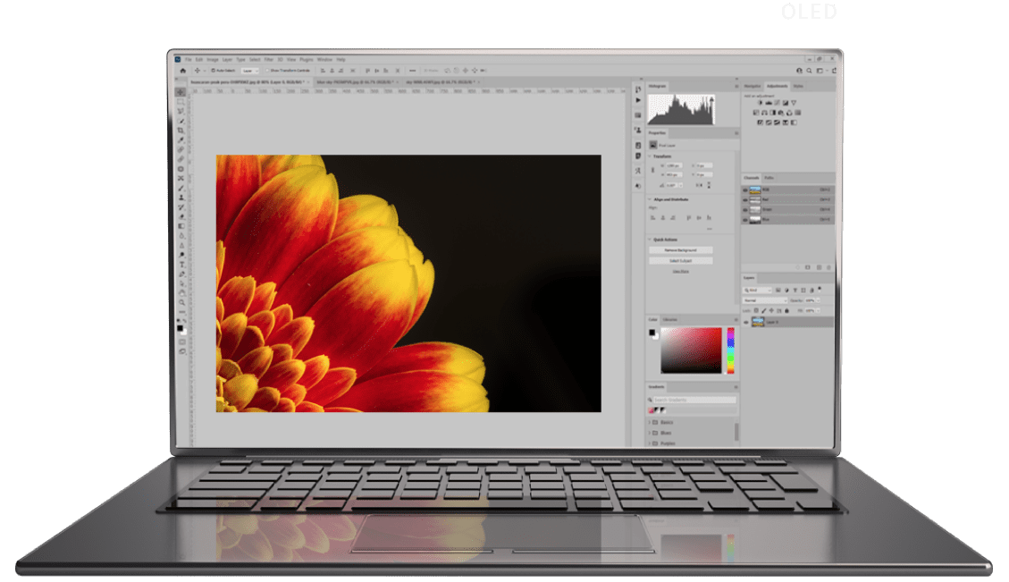 DCI-P3 100% 廣色域,AmLED 在顯著