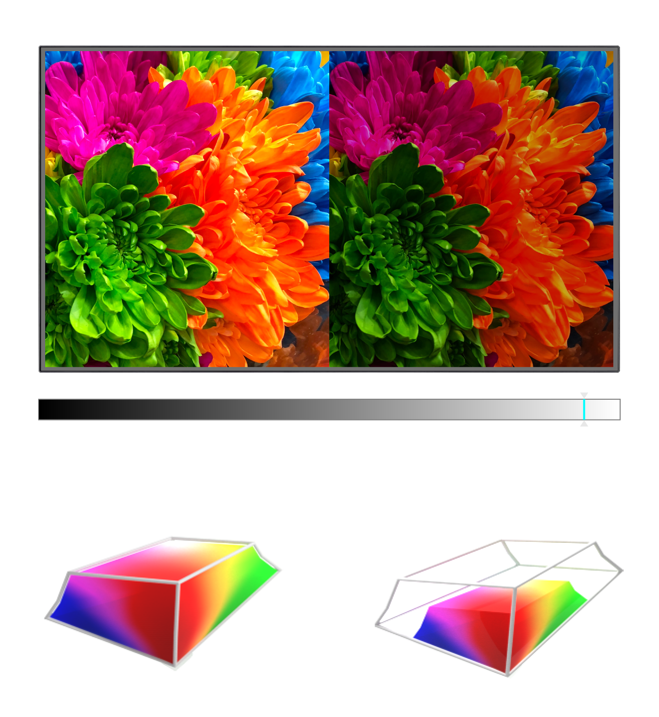 DCI-P3 100%,色彩更鮮艷飽和。同時